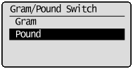 Select <Gram> or <Pound> using [] or [] and press [OK].