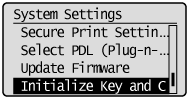 Select <Initialize Key and Certificate> using [] and [] and press [OK].