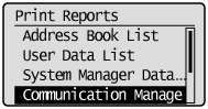 Select <Communication Management Report> using [] or [] and press [OK].