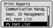Select <PCL Font List> or <PS Font List> using [