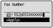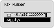 Enter the country code, the area code, and the fax/telephone number using the numeric keys.