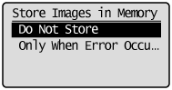 Select <Store Images in Memory> using [] or [] and press [OK].