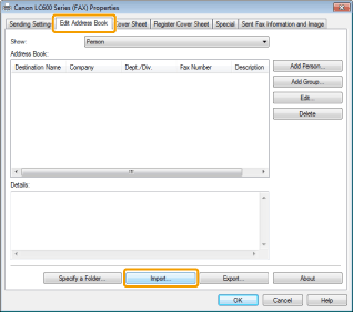See "Faxing (PC Fax)" or "Specifying the Default Fax Settings (PC Fax)" on how to display the [Edit Address Book] tab.