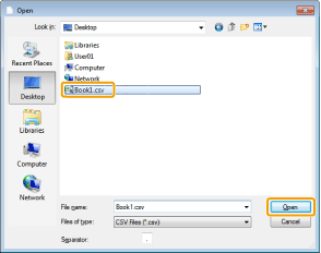 You can load data from CSV (*.csv) files or Canon Address Book files (*.abk) into the address book.