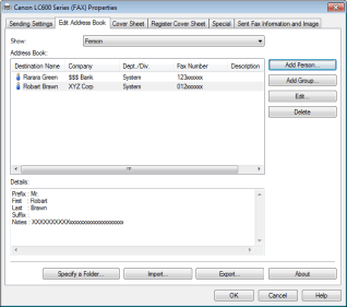 You cannot access or edit the address book if you do not have access permission to the destination folder of the address book. If this is the case, log on as a user having access permission to the folder, or click [Specify a Folder] in the [Edit Address Book] tab, and change the destination folder of the address book to a folder that you have write permission for (see "Changing the Address Book Export Destination (PC Fax)").