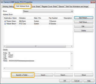 Click [Edit Address Book] -> [Specify a Folder].