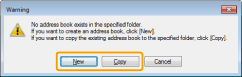 If you want to create an address book, click [New], or if you want to copy the existing address book to the specified folder, click [Copy].