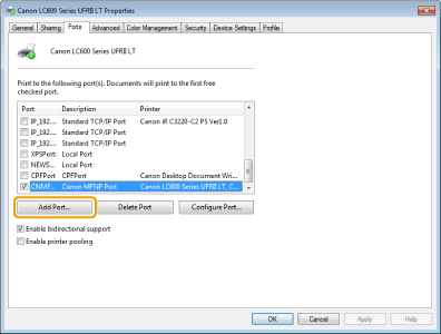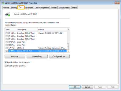 Note that a different IP address is assigned to the installed printer driver. To use the IP address of the machine, configure port settings on your computer after installation.