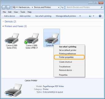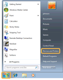Settings] -> [Control Panel] -> [Devices and printers].For Windows Vista click [