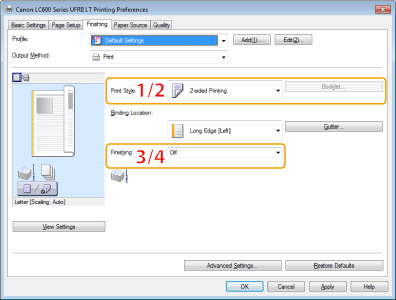 For instructions on how to display the printer driver screen, see "Printing" or "Configuring the Default Print Settings."