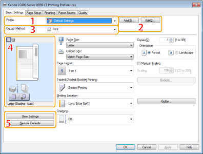 For instructions on how to display the printer driver screen, see "Printing" or "Configuring the Default Print Settings."