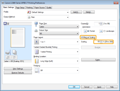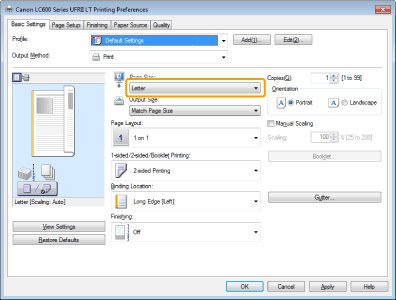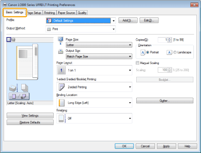 For instructions on how to display the printer driver screen, see "Printing" or "Configuring the Default Print Settings."
