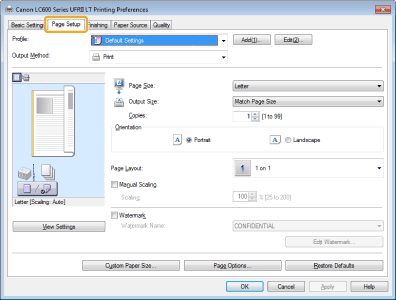For instructions on how to display the printer driver screen, see "Printing" or "Configuring the Default Print Settings."