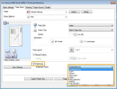 By clicking [Edit Watermark], you can create and register new watermarks. For details, view the online help (see "Viewing the Online Help").