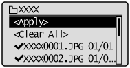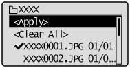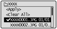 To clear all selected files, select <Clear All> using [] or [] and press [OK].