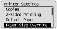 The procedure describes the steps to change the <Paper Size Override> setting.