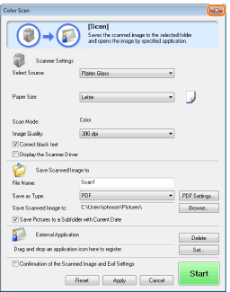 The scanner settings are specified by default as follows.