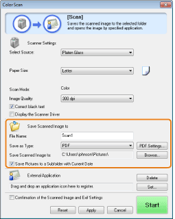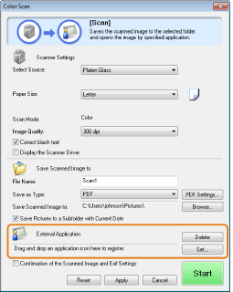 When [Start] is clicked, the [ScanGear MF] dialog box appears and enables you to make advanced settings for scanning.