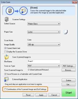 Select the [Confirmation of the Scanned Image and Exif Settings] ([Confirm the Scanned Image] for the [PDF] button) check box.