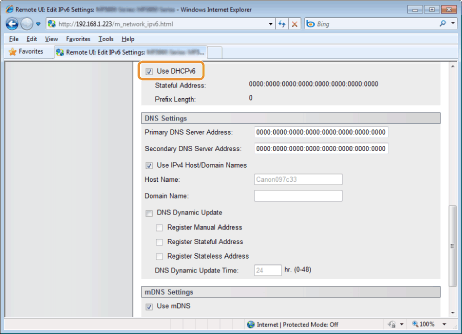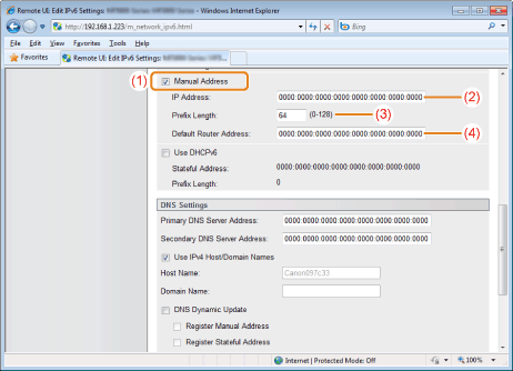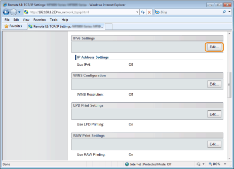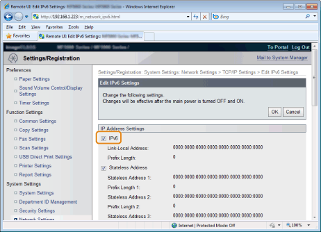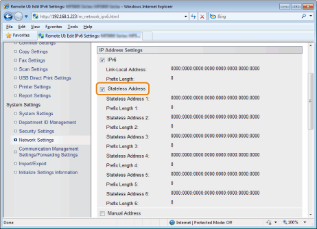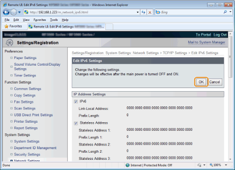 Before setting the IP address, see "Attention (Setting the IPv6 Address)."