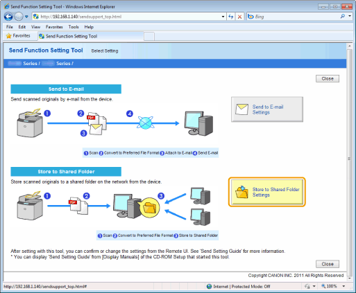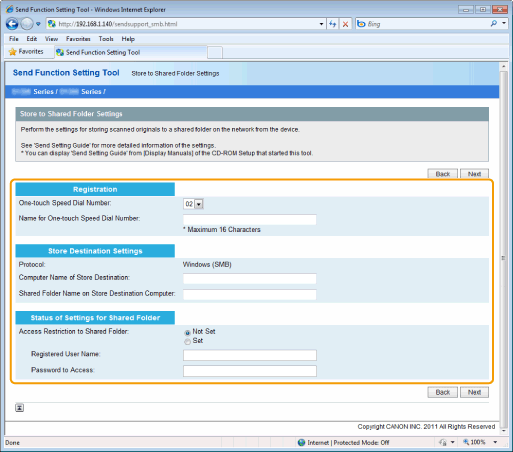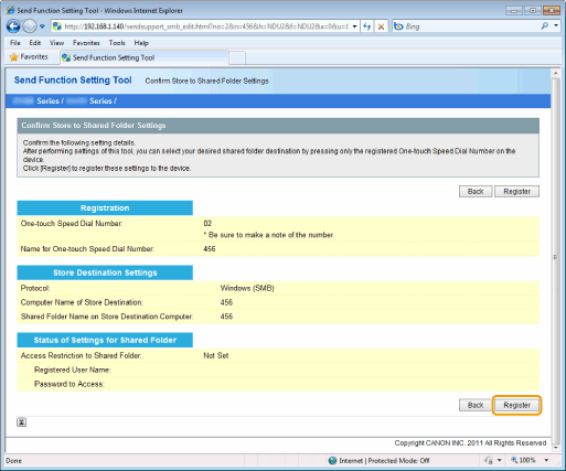 If a Shared Folder Has Not Been SetIn order to send data to shared folders on the network from the machine, it is necessary to set up shared folders on the computer (file server) side where the data will be sent, not just using settings on the machine side. See the Send Setting Guide for shared folder settings.