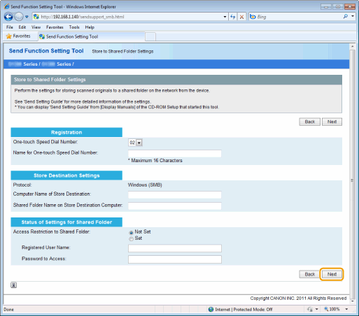 Select the [Set] or [Not Set] check box based on the access restrictions of the shared folder.