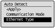 Select <Ethernet Type> using [] or [] and press [OK].
