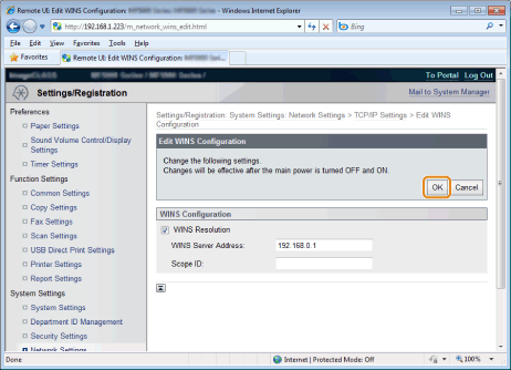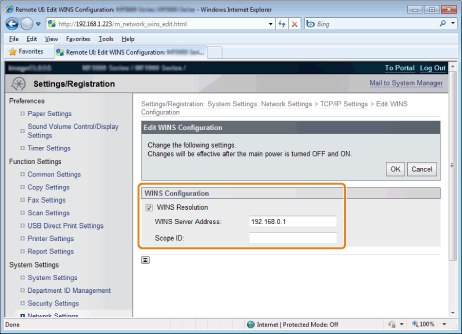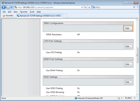 Click [Edit] in [WINS Configuration].