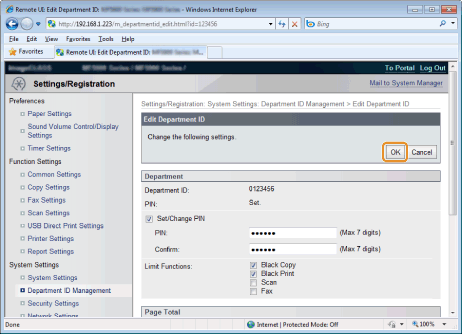 Enter a number up to 7 digits for [PIN] and [Confirm].