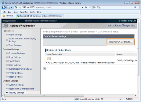 Click [Register Key and Certificate] or [Register CA Certificate].