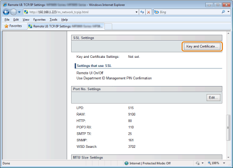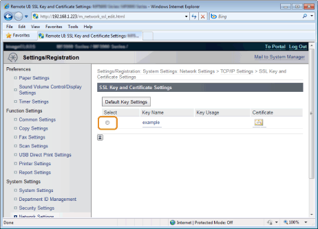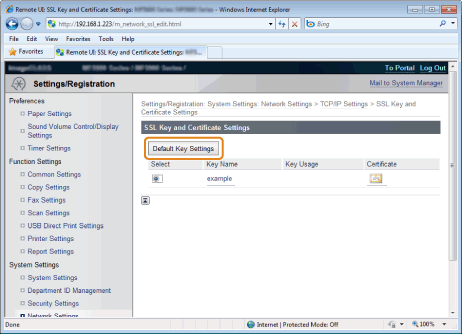 Specify keys and certificates to be used for SSL encrypted communication necessary for communication between this product and remote UI and for IEEE802.1X authentication.