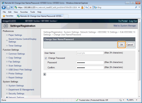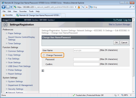 Click [Network Settings] -> [IEEE802.1X Settings].