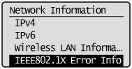 Select <IEEE802.1X Error Information> using [] or [] and press [OK].