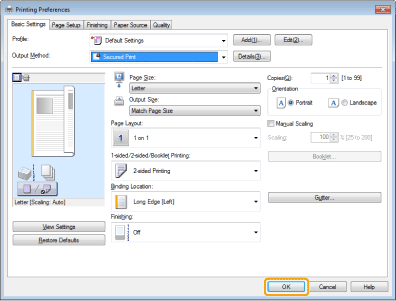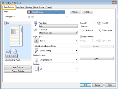 Printer driver screenFor details on displaying the printer driver, see the following.