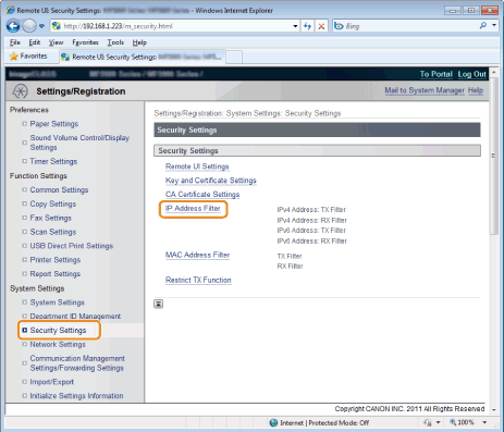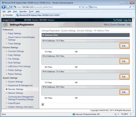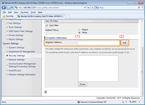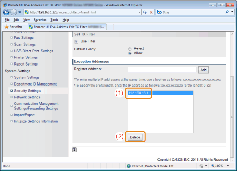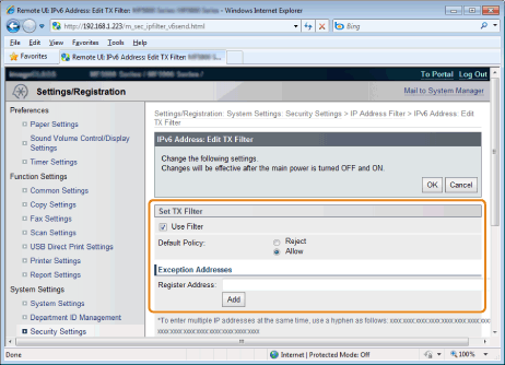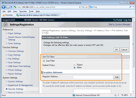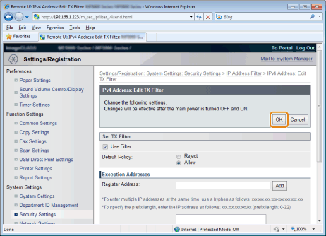 Reject accessing from computers of which addresses specified in [Exception Addresses].