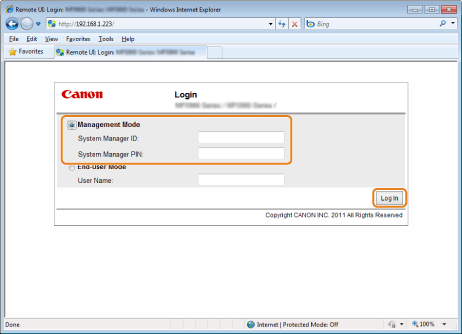 Start the Remote UI and log on in system manager mode.