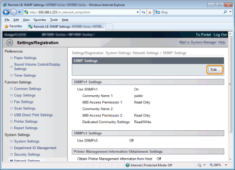 Click [Network Settings] -> [SNMP Settings].