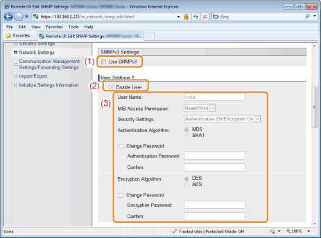 <SNMPv3 Settings> Details can be set only via Remote UI.