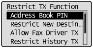 Select <Restrict TX Function> using [] or [] and press [OK].