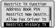 Select <Restrict TX Function> using [] or [] and press [OK].
