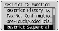 Select <Restrict TX Function> using [] or [] and press [OK].