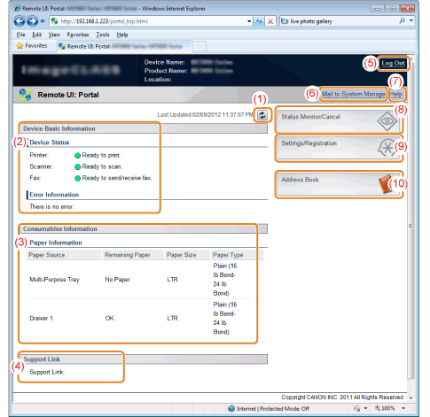 Display the Remote UI top page (log-in screen) when the machine is in log-out status.