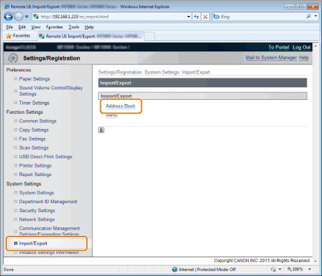 Follow the onscreen instructions and specify the location where the exported address book is stored.