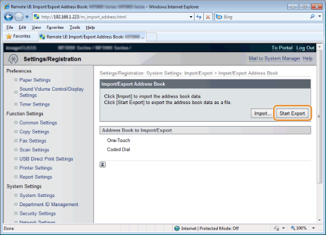 The screen remains the same until the process is complete. Do not click [Start Export] while the hourglass or pointer is being displayed to indicate that the Remote UI is currently in the export process.