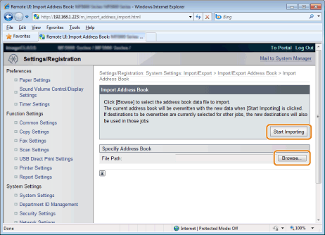 Click [Browse] to select the file to be imported or enter the location where the file is stored.