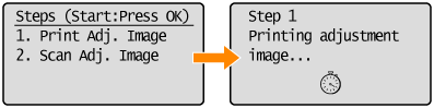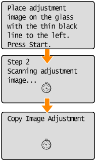 To perform the auto gradation adjustment, follow the two procedures (print -> scan) displayed on the screen.