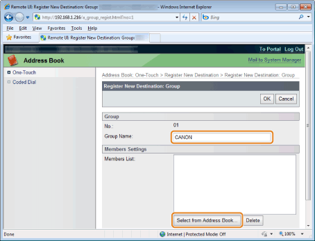 Make sure the destination you registered is displayed in [Members List] and click [OK].