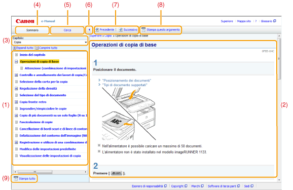 Fare clic per cercare le informazioni desiderate utilizzando parole chiave. Per maggiori informazioni, vedere "Metodo di ricerca".