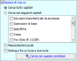 ![]() Specificare le condizioni di ricerca, come capitolo da cercare, riconoscimento maiuscole o distinzione tra un byte e due byte.