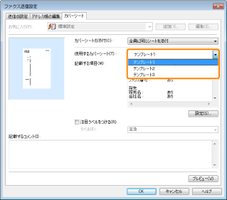 カバーシートには、[送信の設定]タブで指定された宛先ごとの情報が自動的に記載されます。